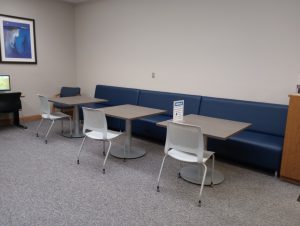 We currently have 3 new tables for up to six people in the computer lab for your convenience.